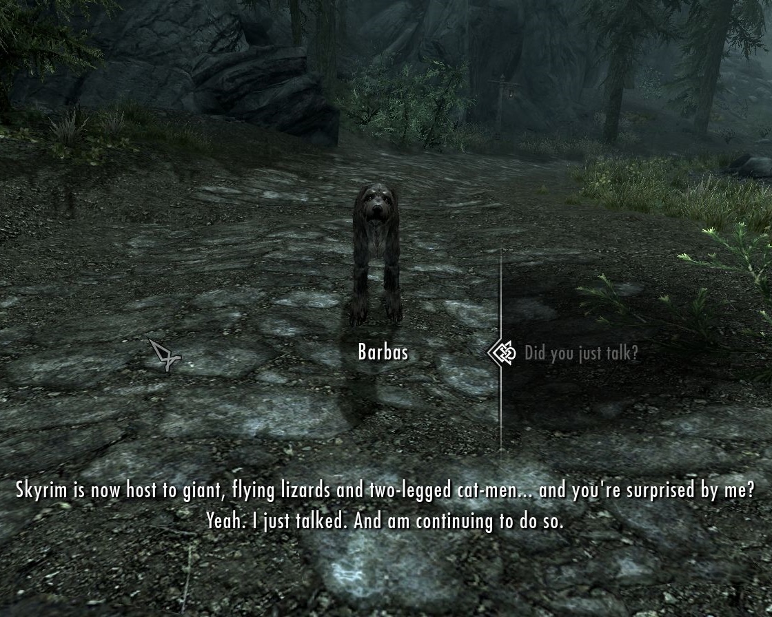 Lod accepts my explanation that it might be better to stay away from that dog. I'm disappointed that he refuses to take his 25 septims back, but I'm obviously not going to start a fight over this.