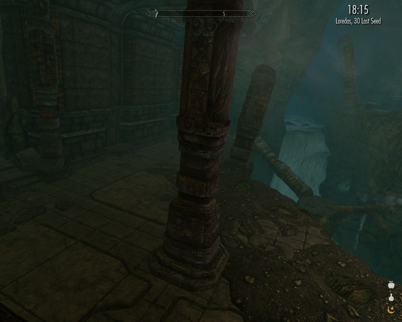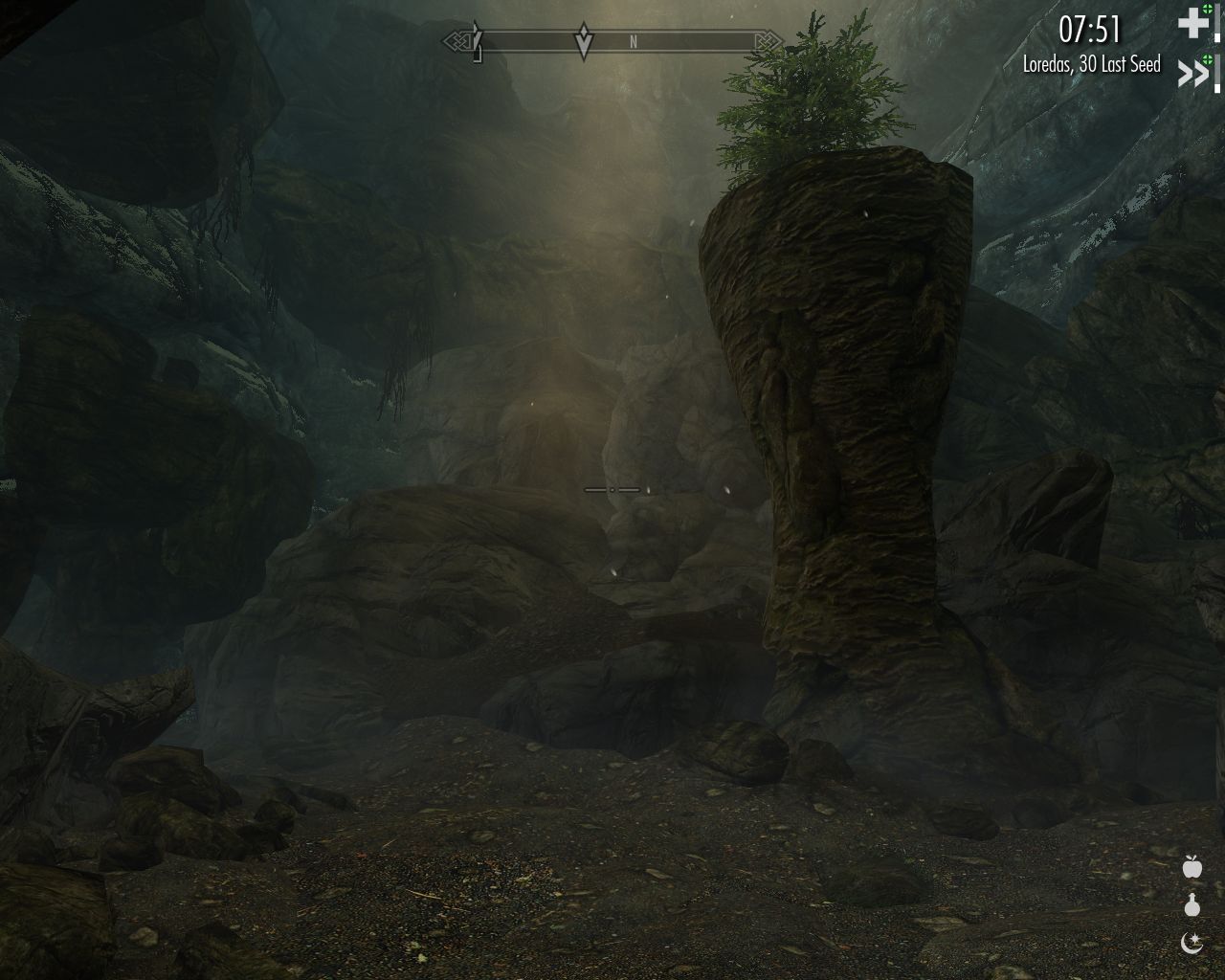 The sun is about to rise soon. On our way to Granite Hall, we see a Seviana's House which has a lock I'm unable to pick (and yes, no one is at home; I did knock first). Then there's Valthume, a Nordic ruin thousands of years old, according to Lydia. Yawn... I yawn all the way back to Granite Hall. Just short of the staircase leading uphill to the town, we have a quick shower in the river ("shower" means it's raining) – I fear they might otherwise refuse to let us into the town, dirty as we are. And finally we're in Granite Hall. We gather up our last strength and are lucky to reach the inn without collapsing. Well, it's not really that bad, I'm just being witty. But we are very tired.