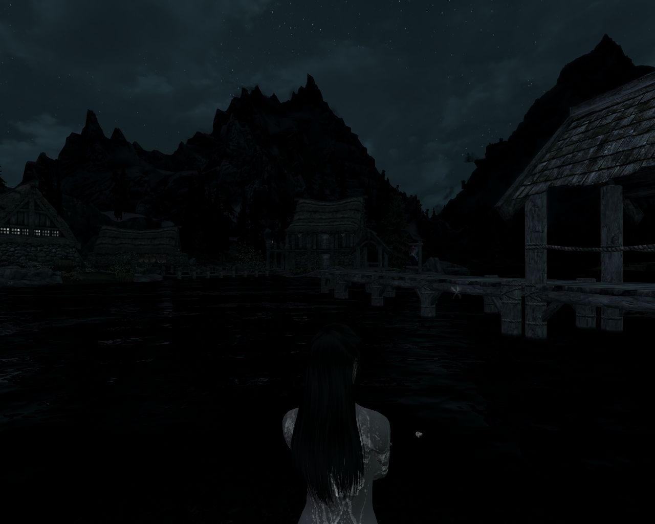 It's still dark outside, so we can bathe in the lake without the fear of exposing ourselves indecently. Only the best inns have baths, and Aurora Borealis Inn is not one of them.
