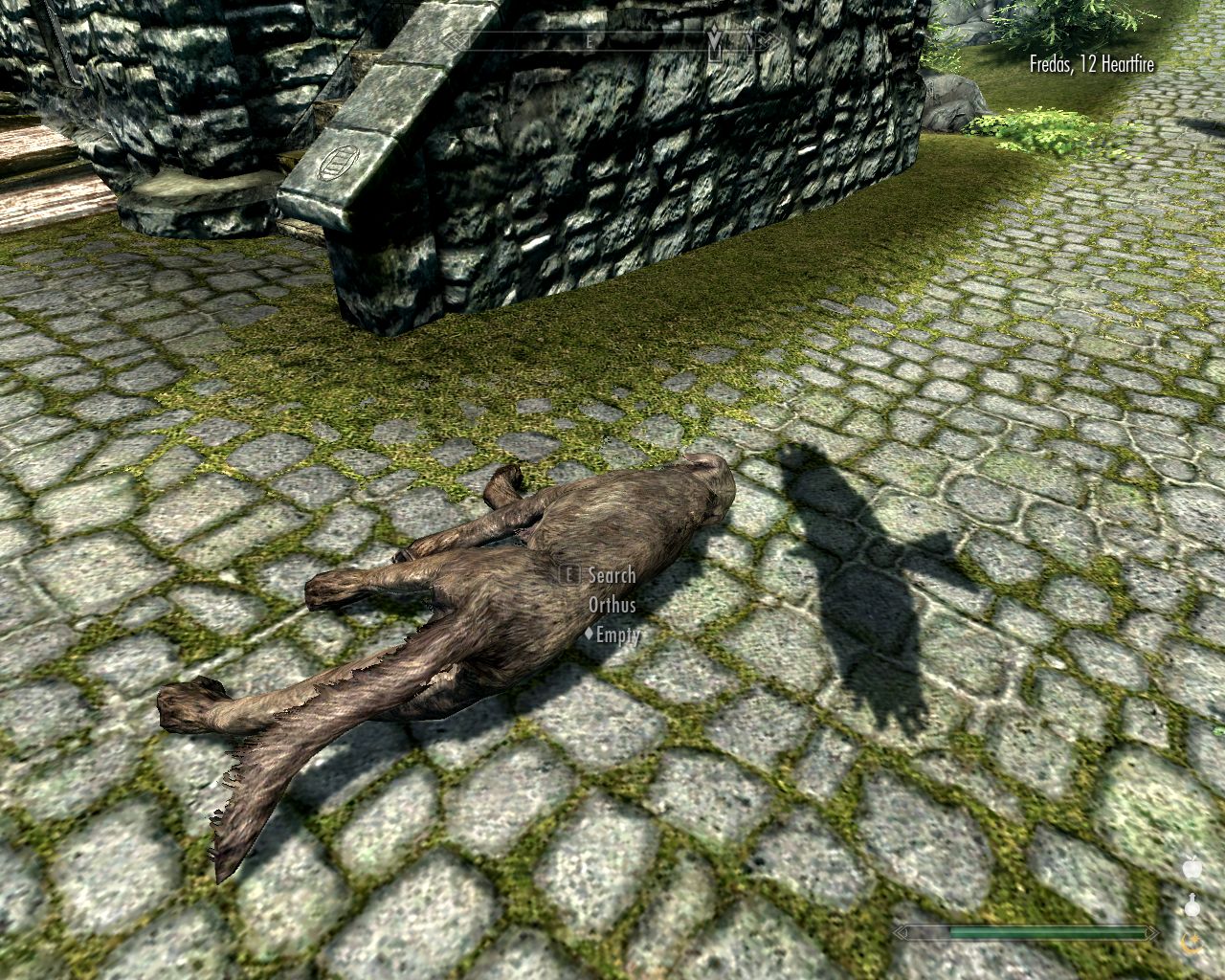Halfway to the palace, I find this unfortunate dog. I've no idea how he met his death.