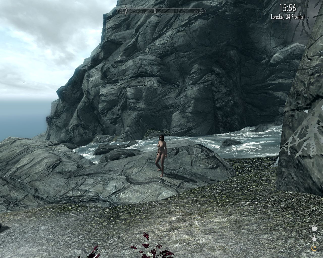 After a little reflection, I decide we'll proceed northwards to Skaal, from there westwards to the Water Stone and from there along the coast to Ravenrock. Should we arrive in Ravenrock so late that I won't be able to find a sex partner, then so be it. I mean, Ravenrock traders have too little money, so I want to sell as much as I can in Skaal. Greed beats sex drive. Besides, Veleth may be busy or something, so it's not necessarily wise to hurry back to Ravenrock just for his sake.