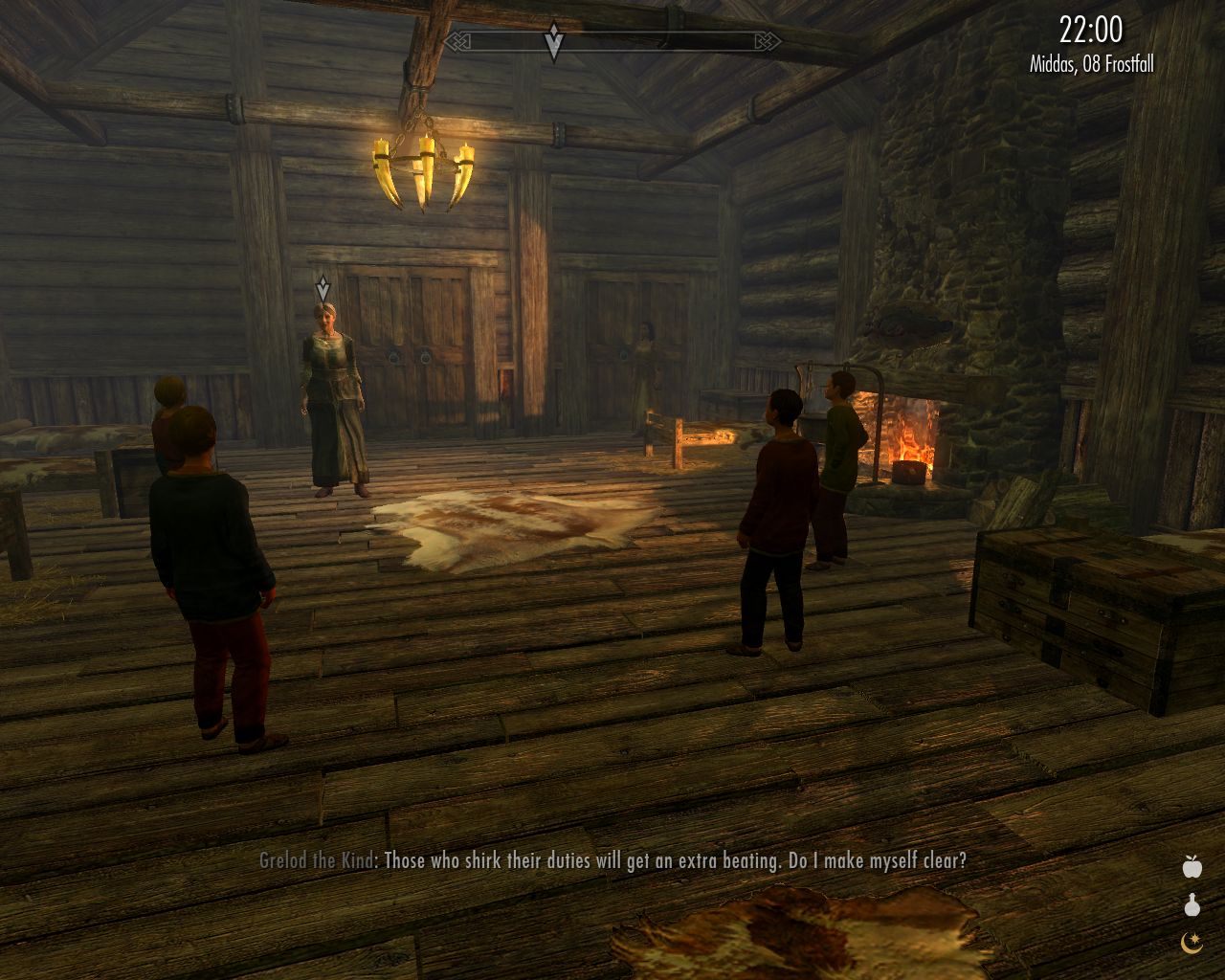 It's half past 1 in the night as I sneak into the orphanage. Everyone is sleeping. I kill Grelod without an effort, but somehow she makes a noise with her very last breath. Maybe I'm not entirely sober after all. At any rate, everybody wake up and run into her room. Constance begs me not to hurt the children – as if I would. I waste no time getting away from there.