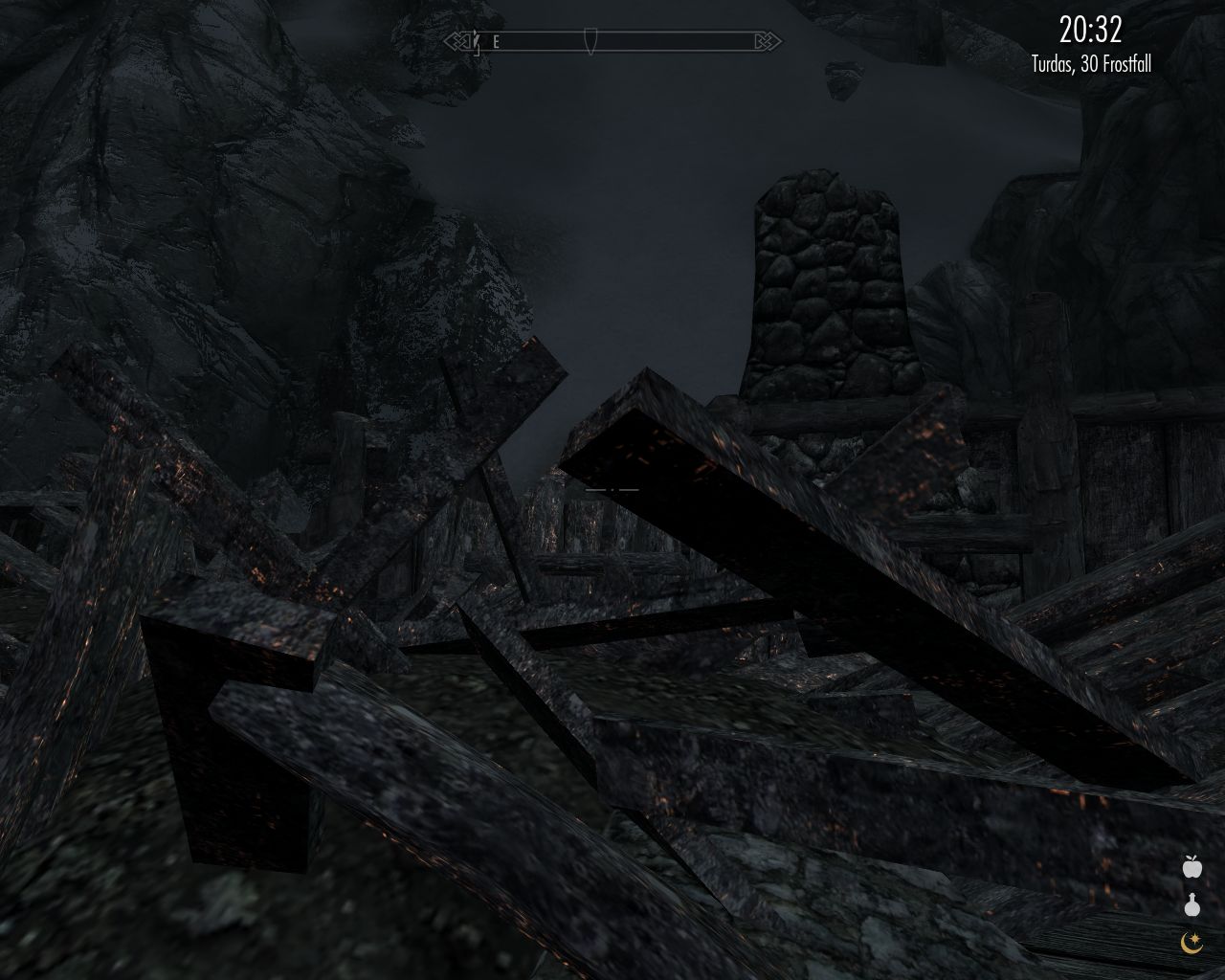 The ruins essentially divide the village in two parts, and getting from one side to another is very difficult. That's why we need a long time to kill all the bandits (we have to, because they wouldn't let us sleep in peace) and find intact beds.