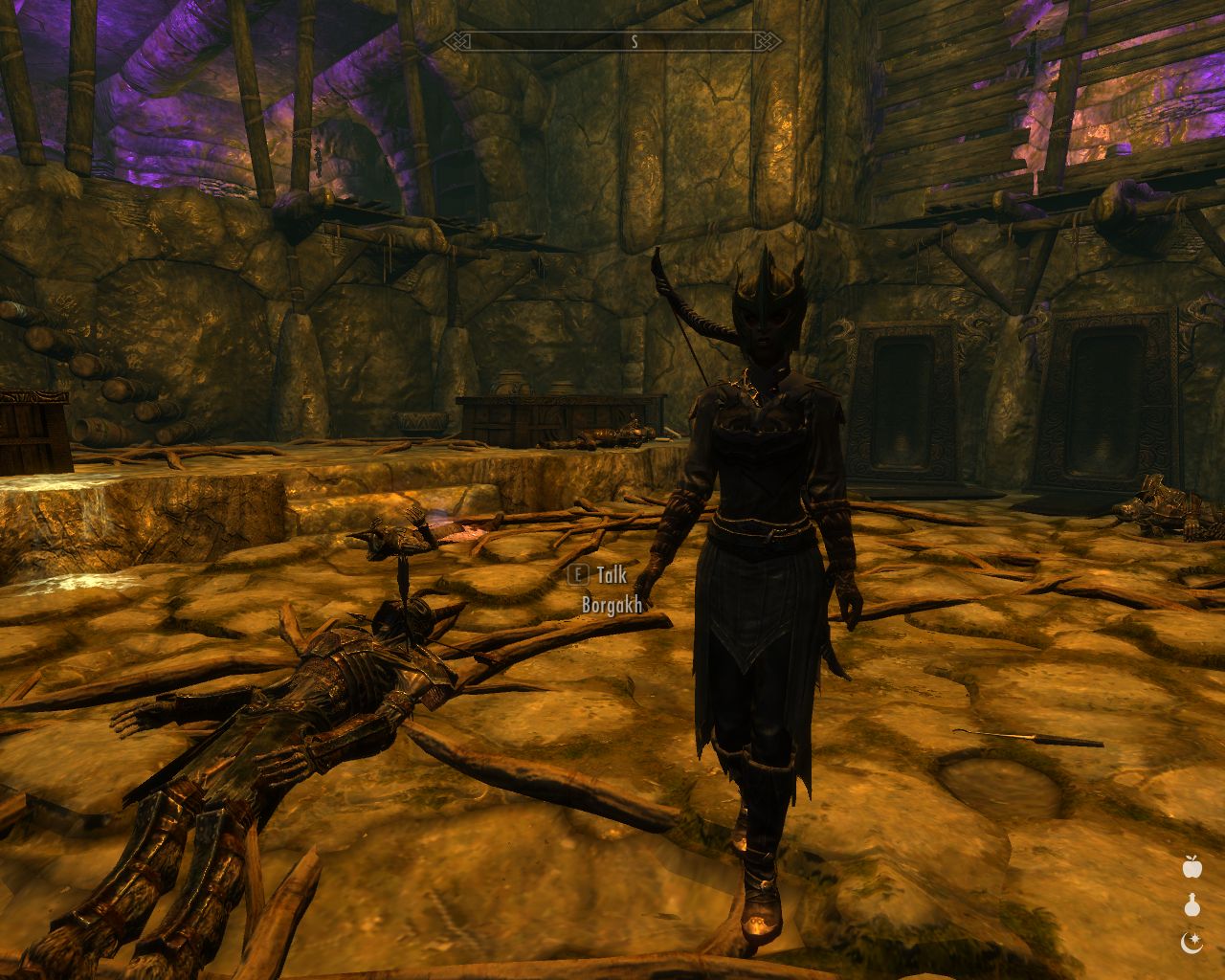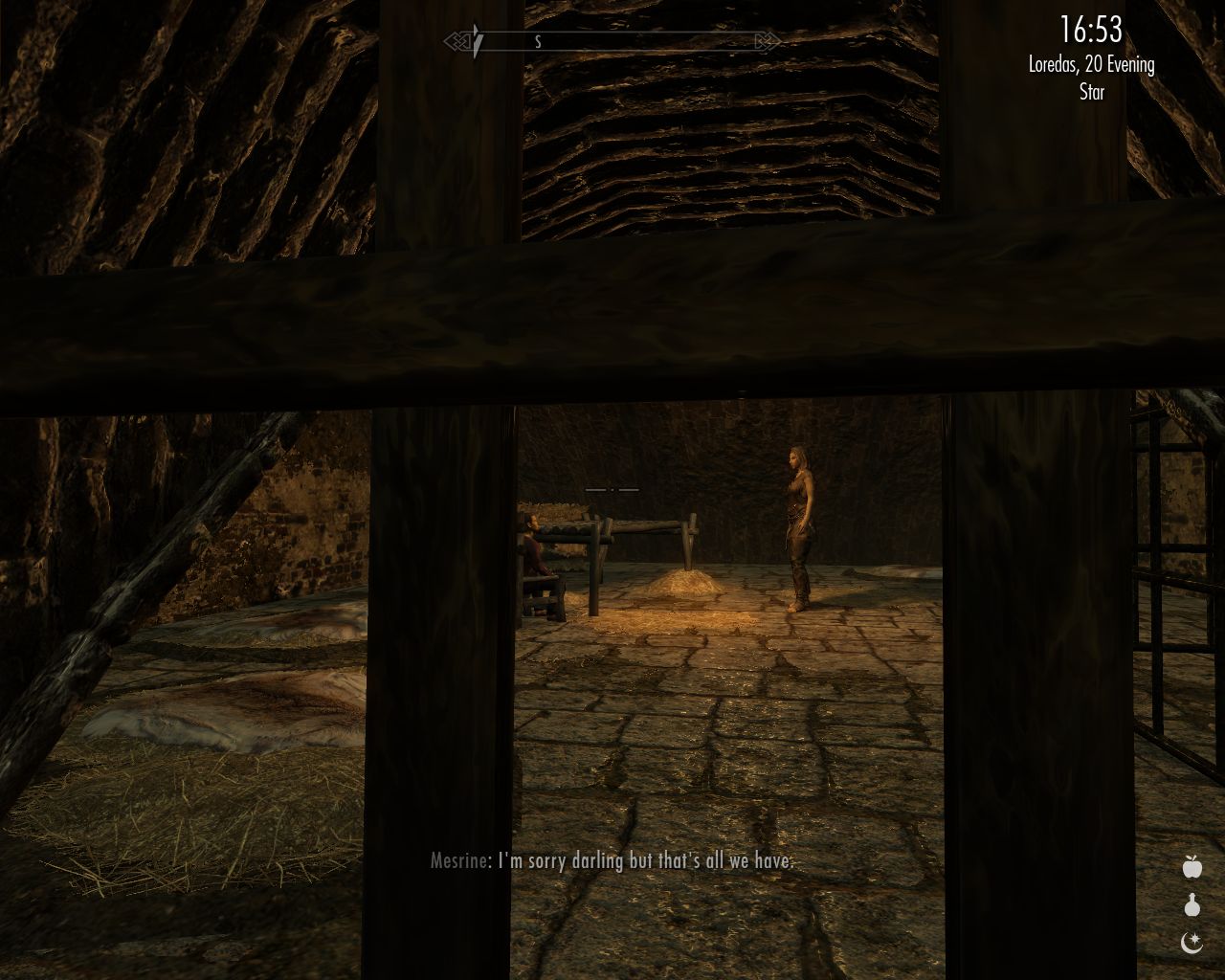 Jenassa turns up before the others. We sit and chat. Jenassa tells me she had a frank conversation with Borgakh a week ago in Winterhold that morning when Lydia and I slept in. Jenassa told Borgakh many things I already know while she learned that Orcs never do oral or anal sex, and although Borgakh dislikes the Orcs' traditional way of life and hopes to learn about the great wide world and various worldviews and lifestyles traveling with us, she still disapproves of sexual promiscuity and is determined to keep her virginity until her wedding night.