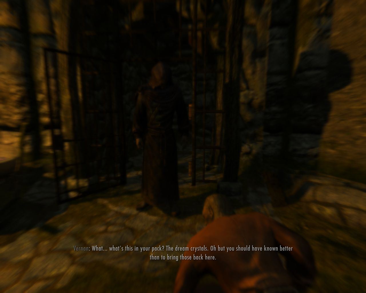 Something is happening to Vernan. Then he's like "What? Wait, no! Stop!" Then he kind of shrinks and disappears. Brother Arnand tells us triumphantly that we've done it. It's over. Vernan has vanished into Oblivion along with the evil crystal.