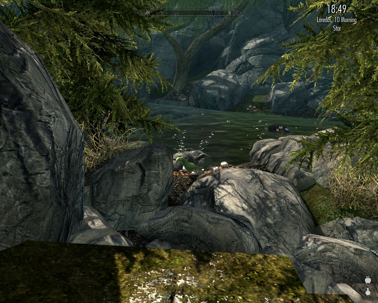 Finally we're there and no one is coming anymore. The place is called Cliffs of Dusk. Speaking of dusk, it's time for us to keep an eye out for lodging. The sun goes down much later in Summerset than it does in Skyrim (possibly because of a more southerly latitude), but it is getting darker now.