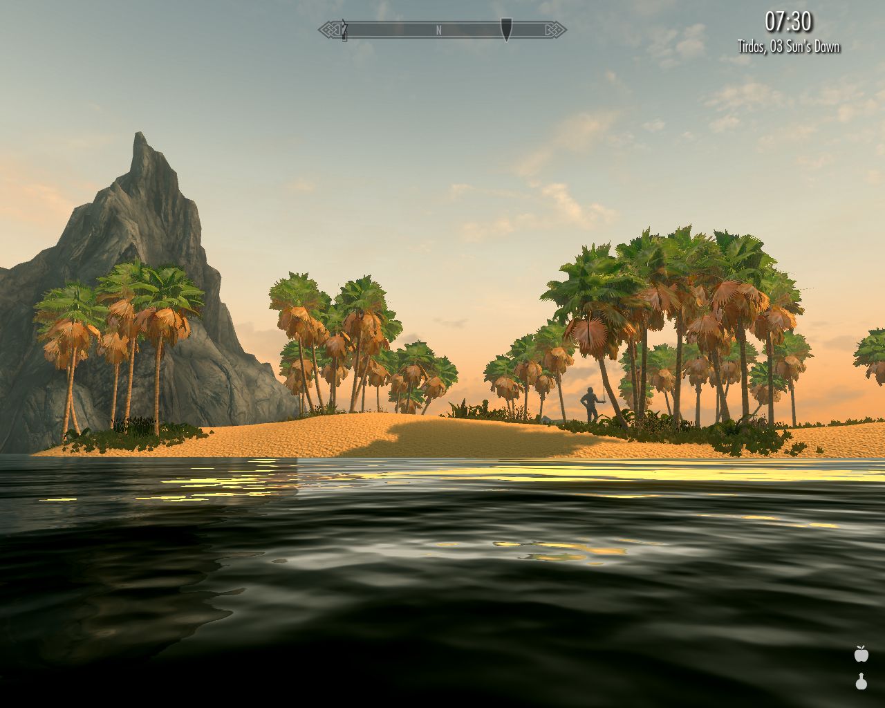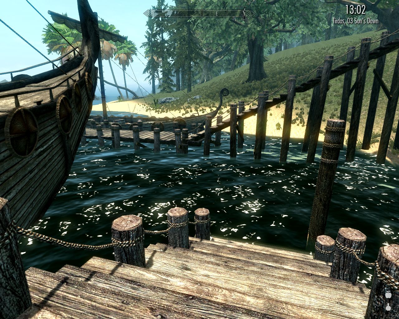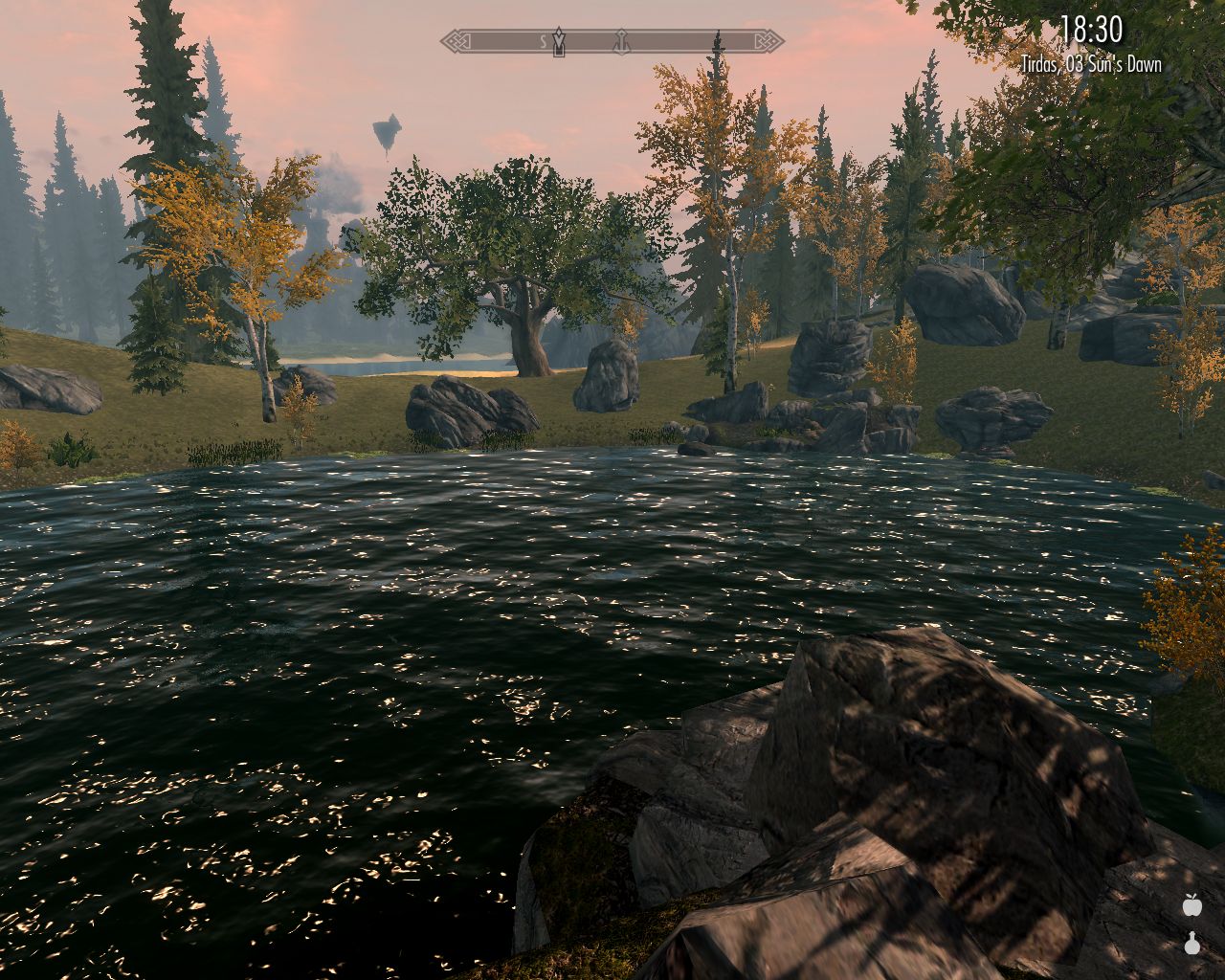 Ebon is very peaceful and beautiful, and we could just sit and chat the evening away looking at the lake, but somehow we've all become so excited by the prospect of reaching Hviterun by Vera's birthday that we can't sit still. So we do a little shopping and proceed to Alinor.