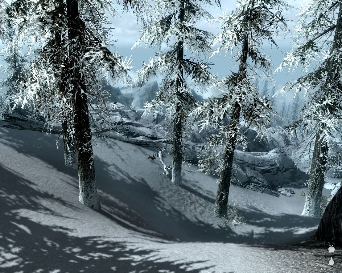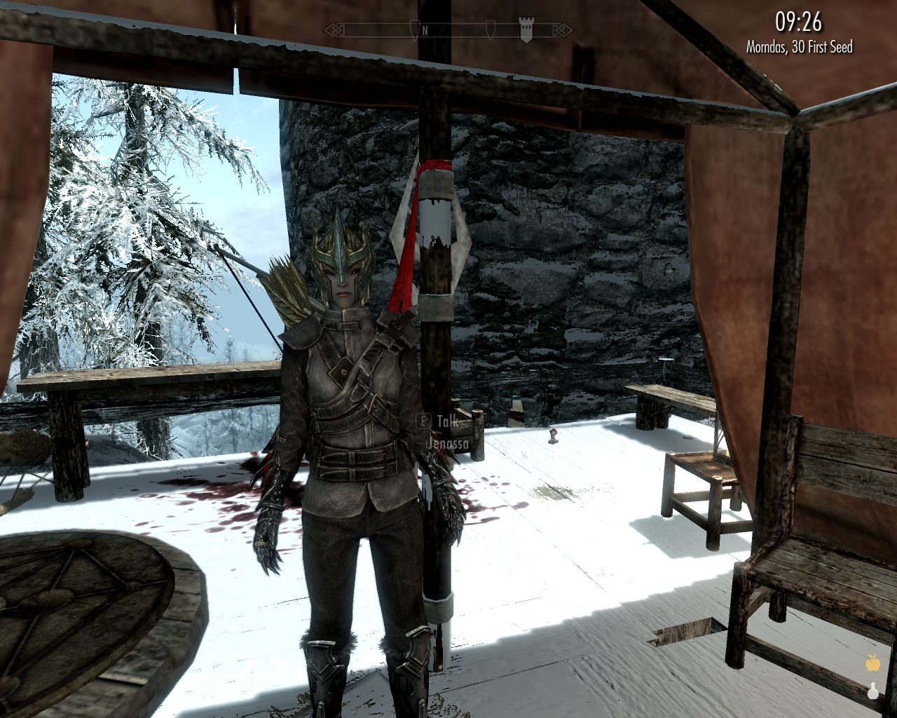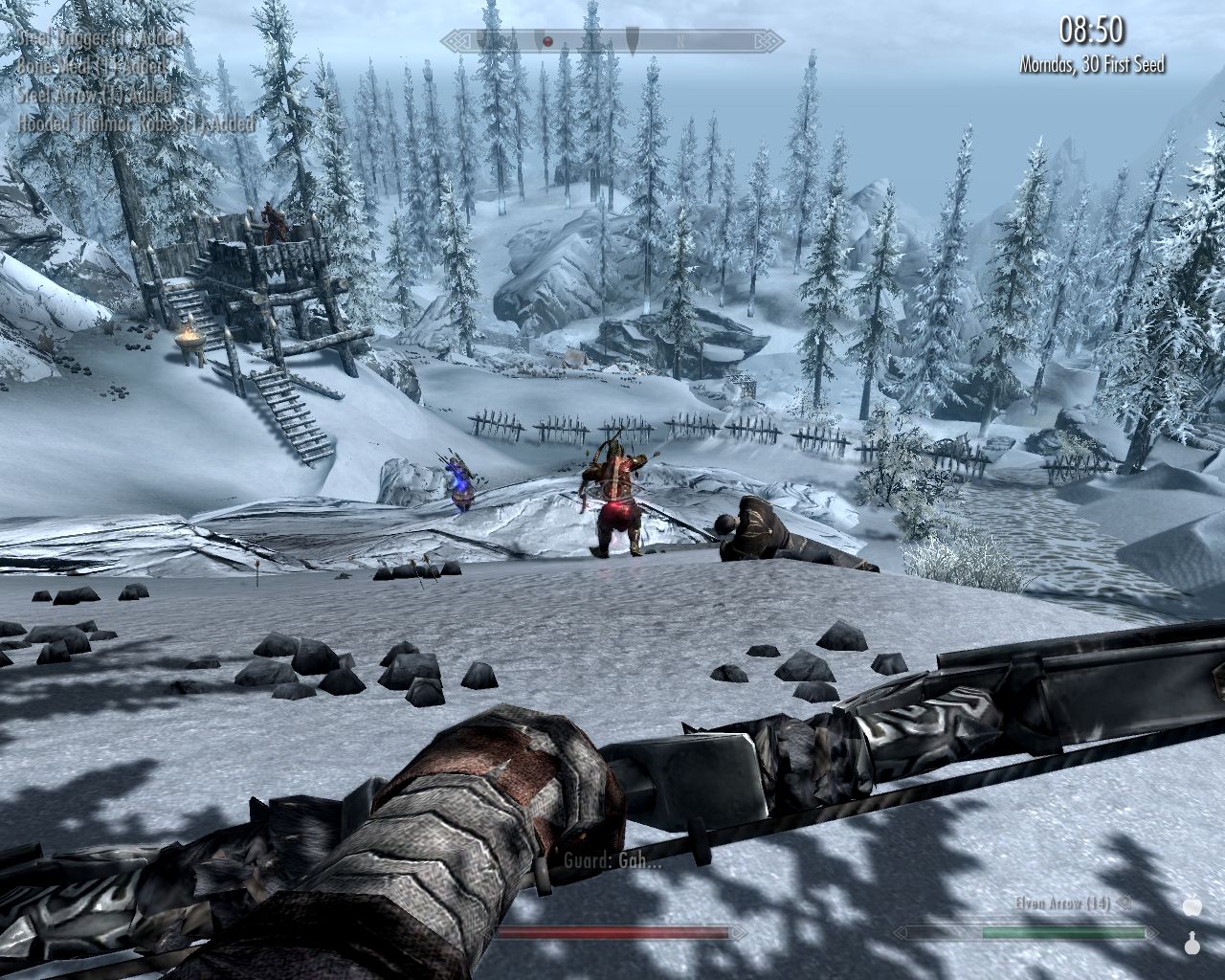 I run a little way down the road. The bright glow of the sunlit snow makes it difficult to use Sense of Smell and I realize I shouldn't have given my girls Glass Helmets, because the non-mage thalmors wear precisely those. Right now, however, the girls are obviously somewhere behind me.