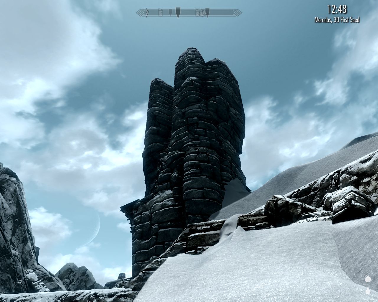 I realize I'm not really peckish, just impatient to get back to Skyrim. We eat a few bites and then exit into a crazy weather with some sunshine between depressing dark gray clouds and a slight snowfall. The only thing missing is a rainbow.