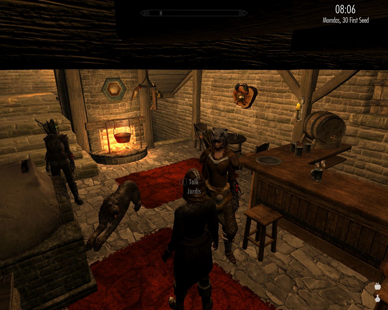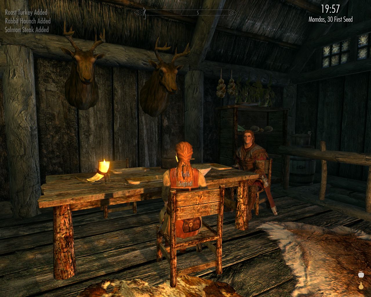 I can barely muster enough patience to make some polite small talk with Sigrid and Dorthe. In fact, Hadvar has something he needs to do, but he promises to join me at the inn shortly.