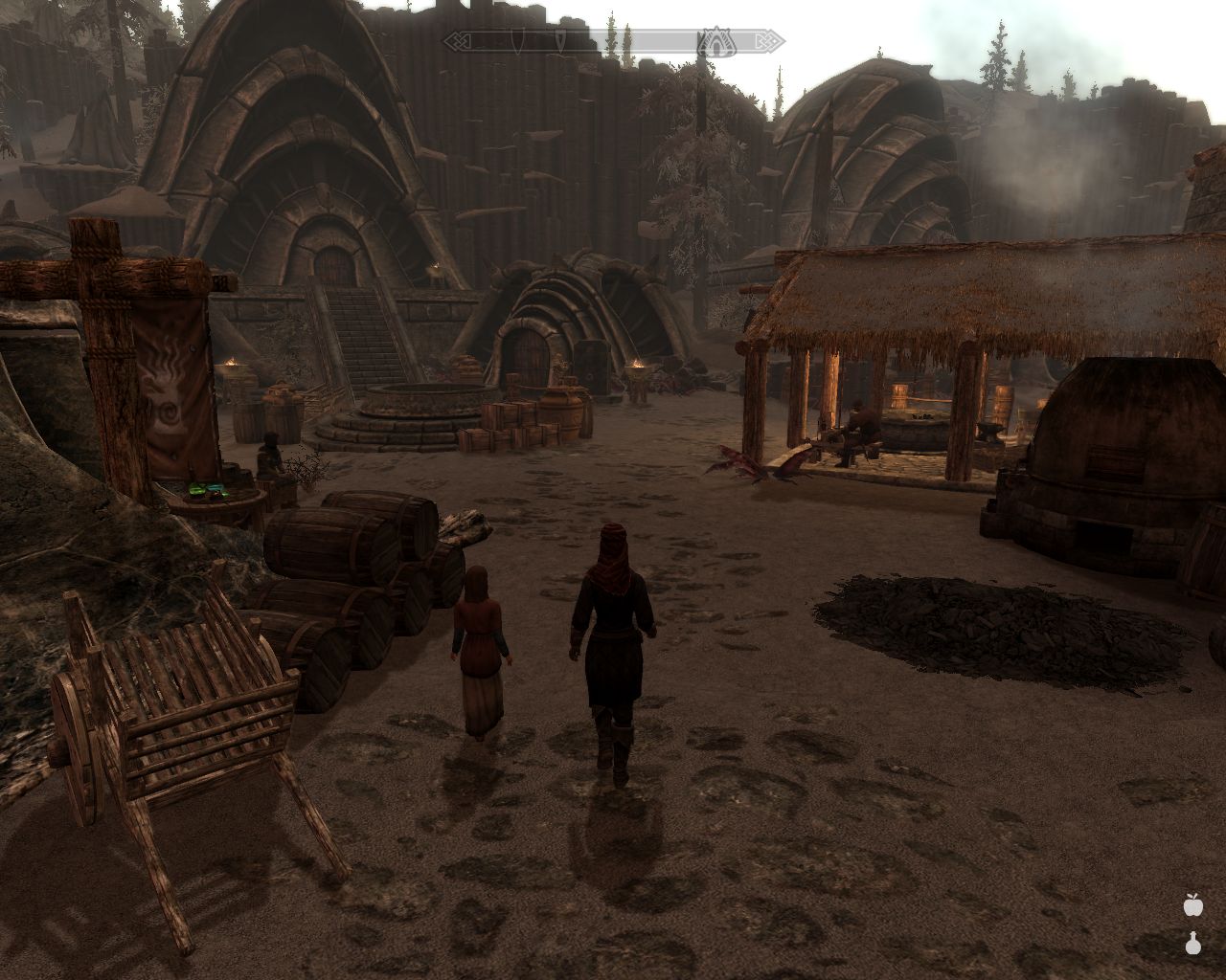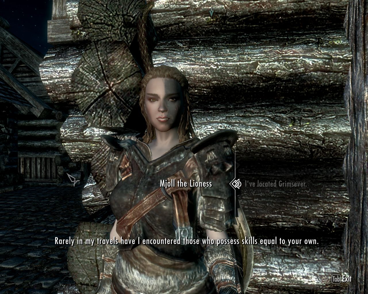 During our rounds saying goodbye to our friends, Sofie informs me Mogrul likes me. "Yes, I've noticed," I reply drily. Sofie says he's really nice, and Orc men like women who are good fighters, as someone told her back in Windhelm.