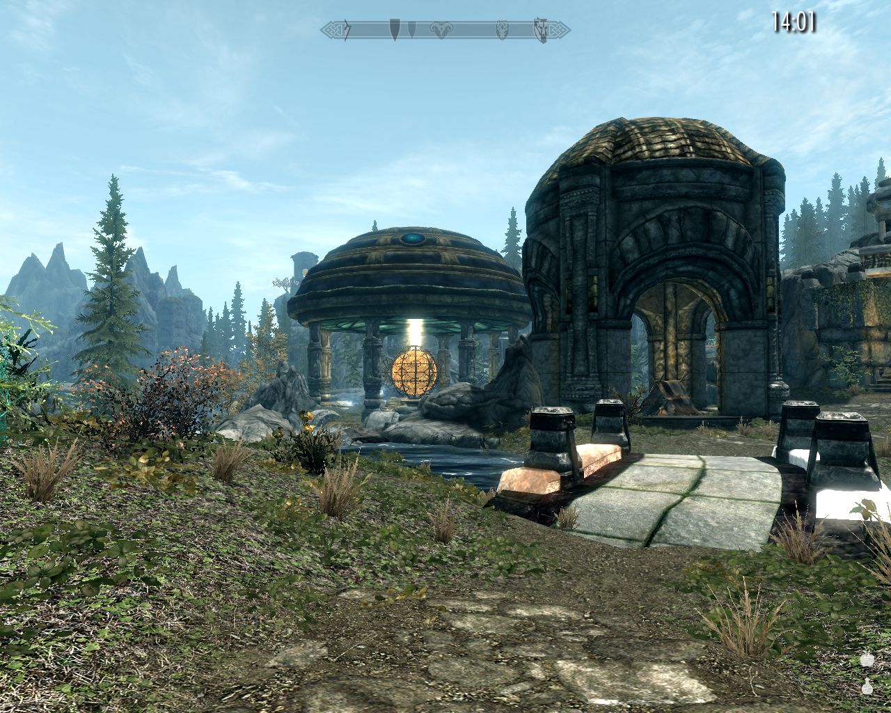 While I'm floating to where I left them, I ask myself once again what are we doing in this crazy maze, trying to solve some cryptic puzzles way over our heads. Why am I exposing my followers to extreme danger instead of just enjoying the amazing beauty in the area where the portal to Skyrim is? Why stick my nose into things that mean nothing to me?