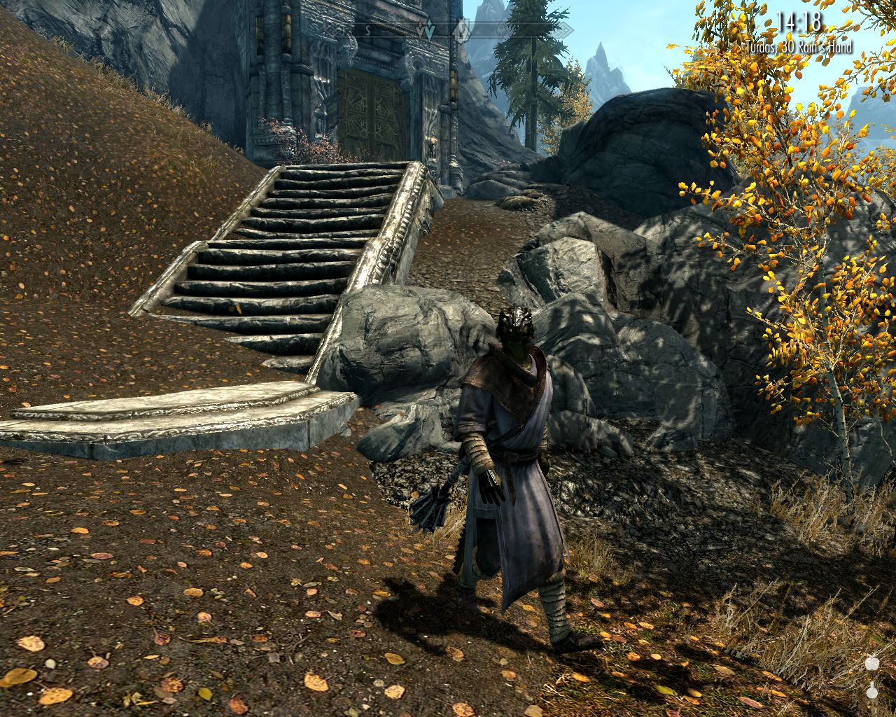 We go out again and proceed eastwards through the mountain pass. Our first destination on the eastern side of the mountains is The Naked Dragon Riften.