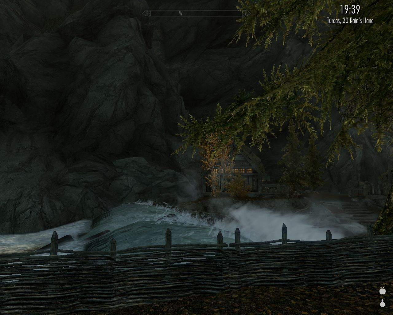 To our left is the ruined shack where the unfortunate madman Narfi lives.