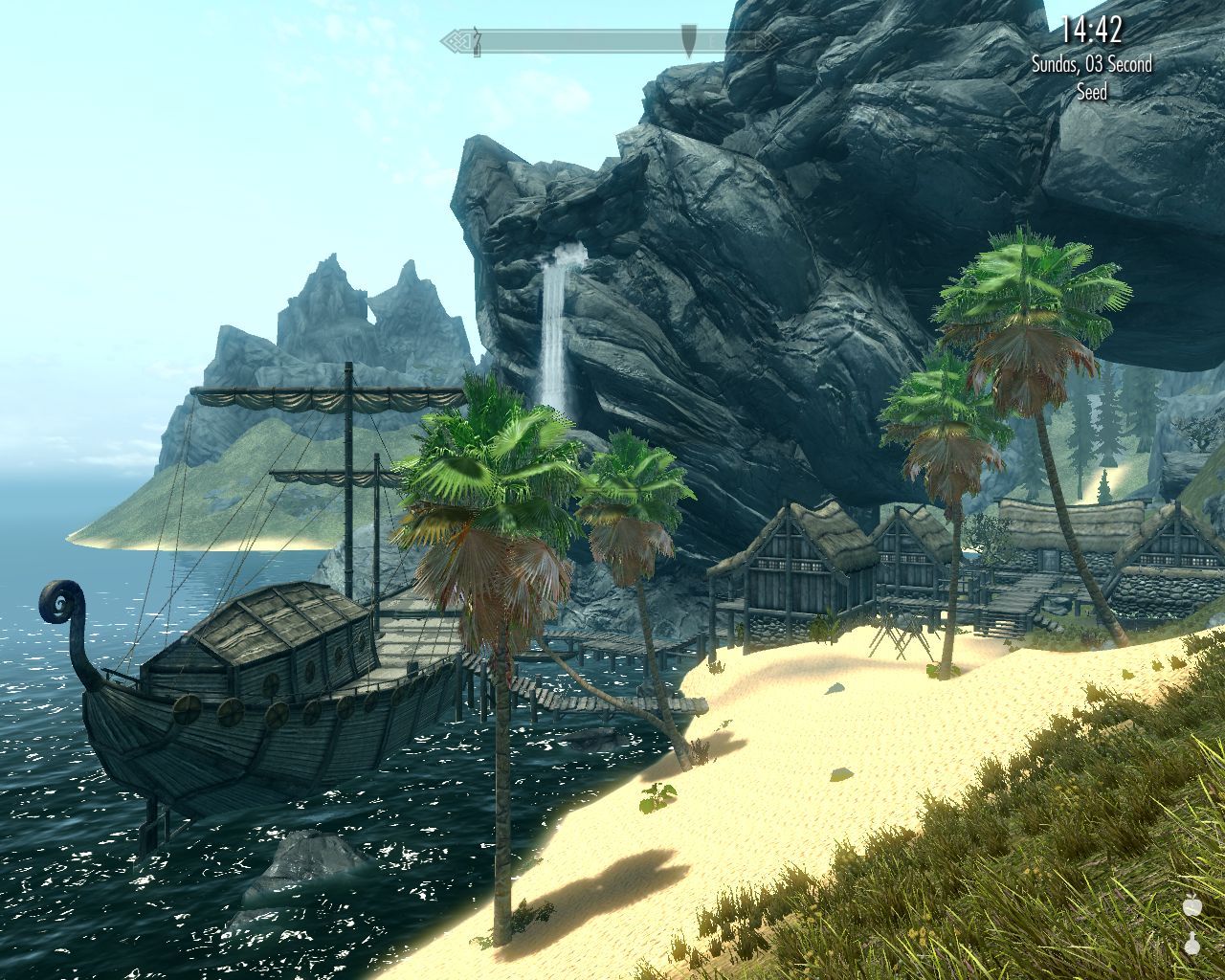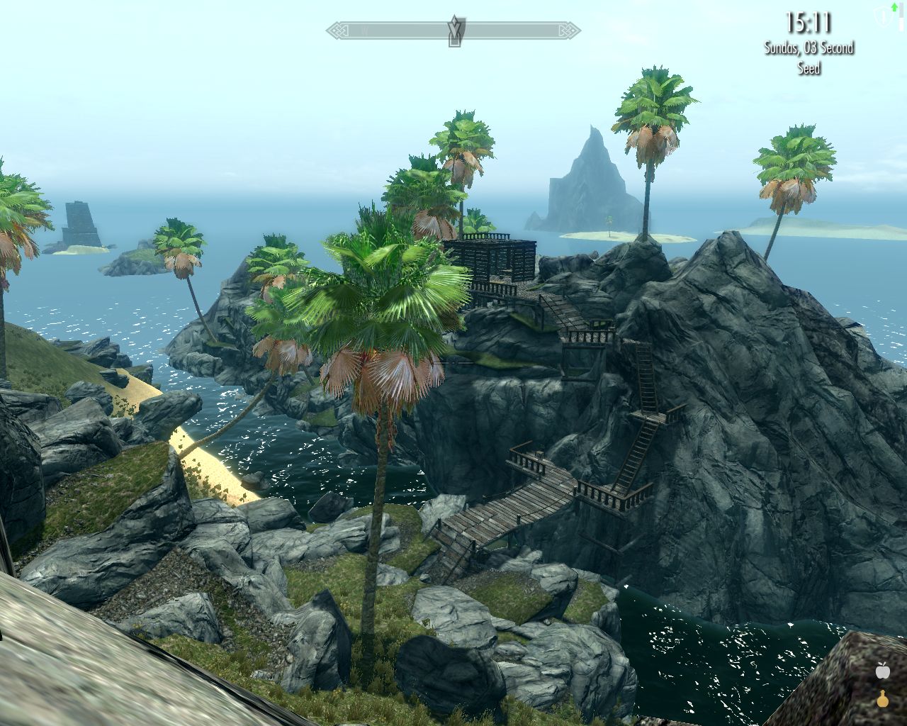 About halfway between Graddun Spring and Lillandril is a small island with wooden fortifications. It's just off the coast (you can reach it along a walkway without having to swim) and it's really beautiful.