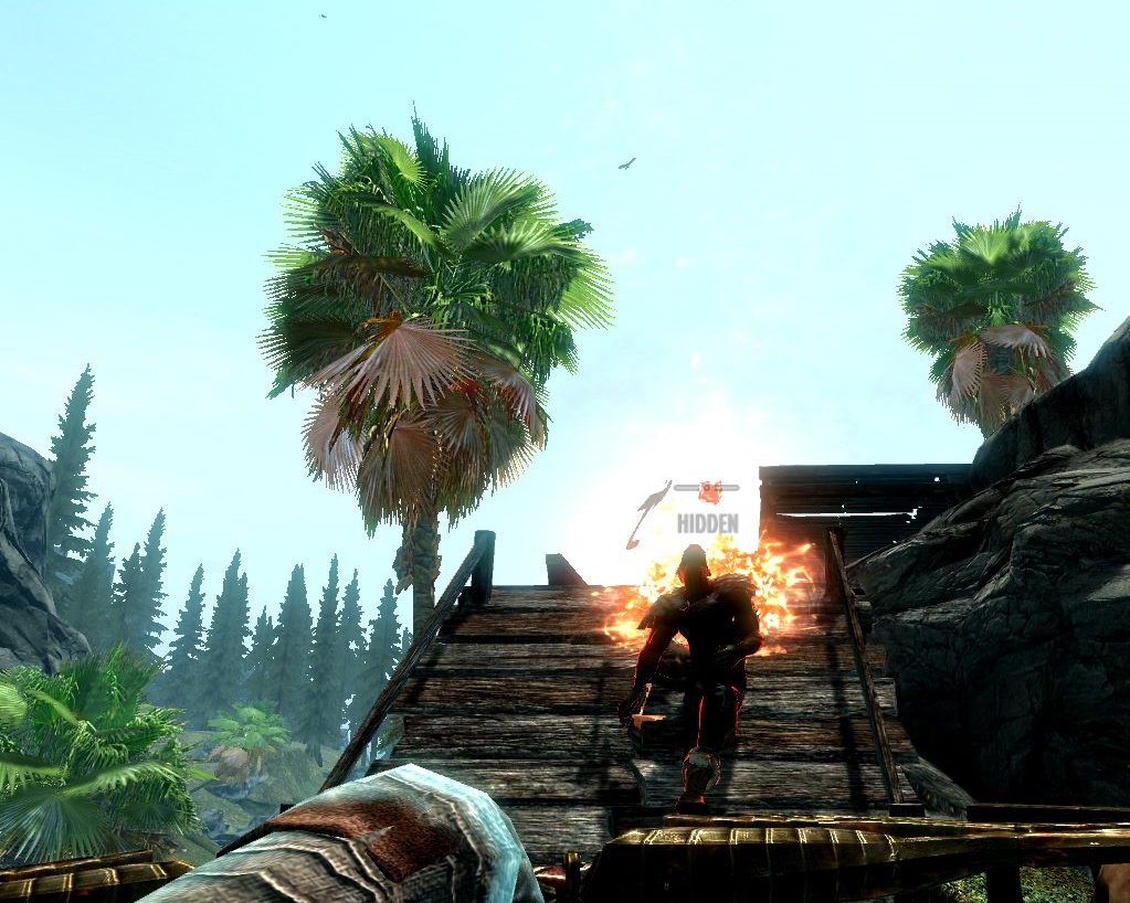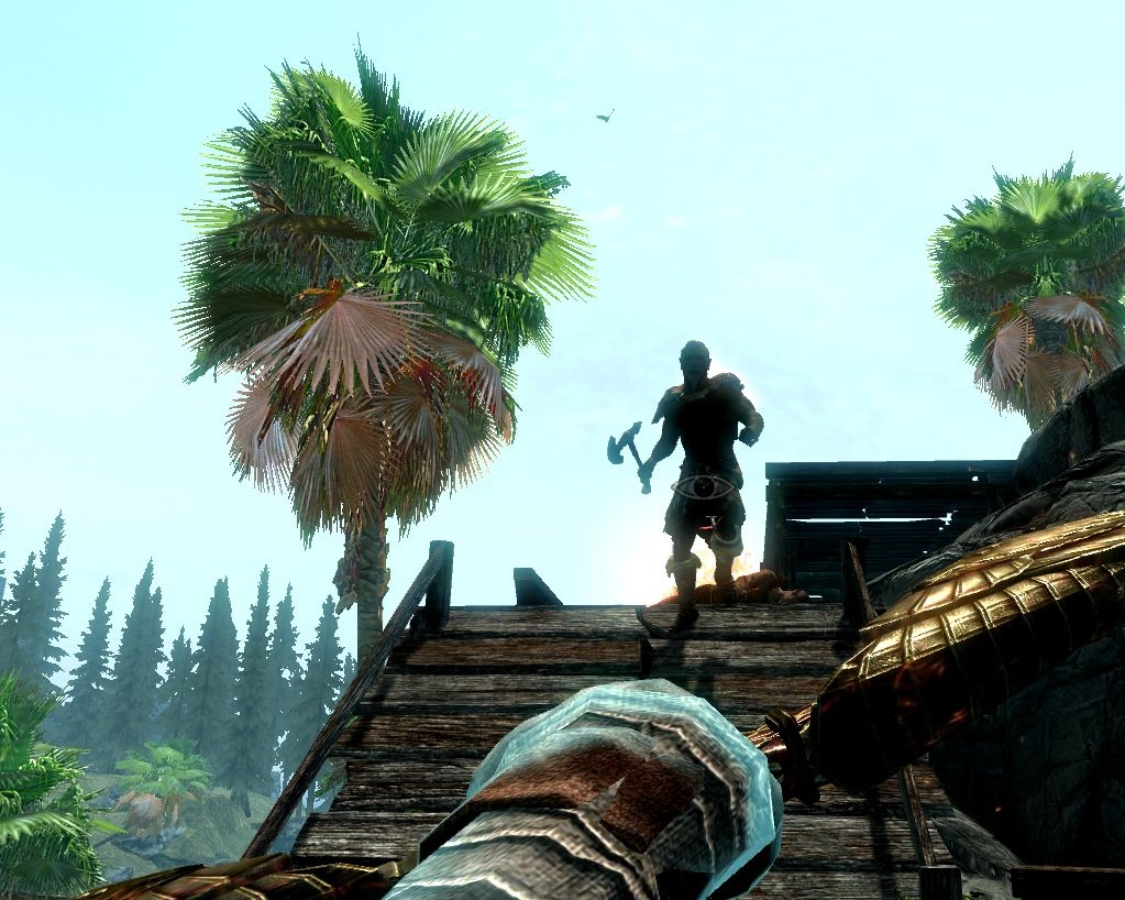 As we remember, this village is supposed to be inhabited by outlaws who are hostile to strangers. That's why we sneak carefully past it in case it's true and they might notice us and attack. This is not Skyrim, so I'm not obliged to kill bandits, and as you may have noticed, I hate to kill people who haven't done me anything bad. Besides, banditry adds instability to this region which, in spite of everything, is still Skyrim's enemy. (Although, come to think of it, I'm from High Rock, so why should I even care? But I do.)
