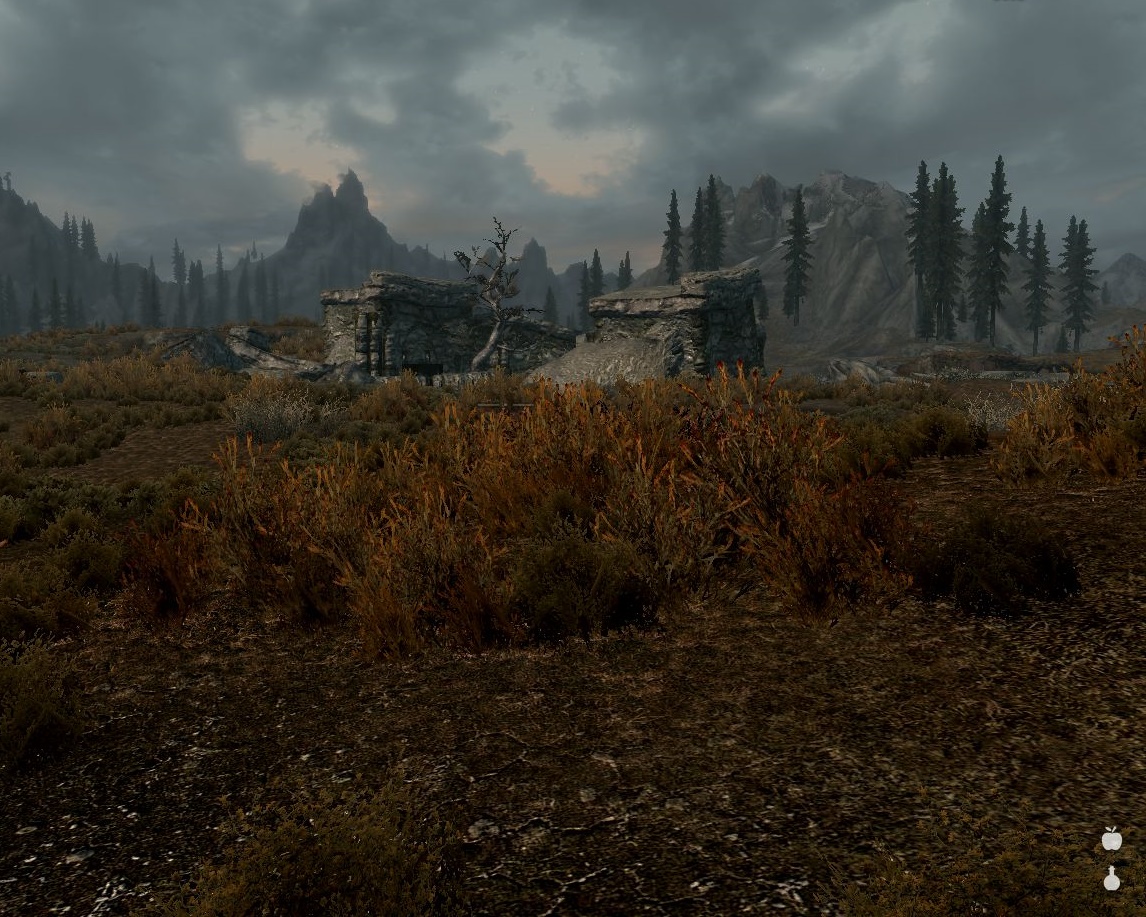 By the way, this village is supposed to be called Elinhir. Can't be the town of Elinhir southwest of Falkreath, can it? No, Ghorbash assures me. This is just a village with the same name. On the official maps it's referred to as Upper Elinhir because it's up on the hills. The legends say the city of Elinhir in the lowlands further southeast was established by the people from this area and is in fact named after this village.