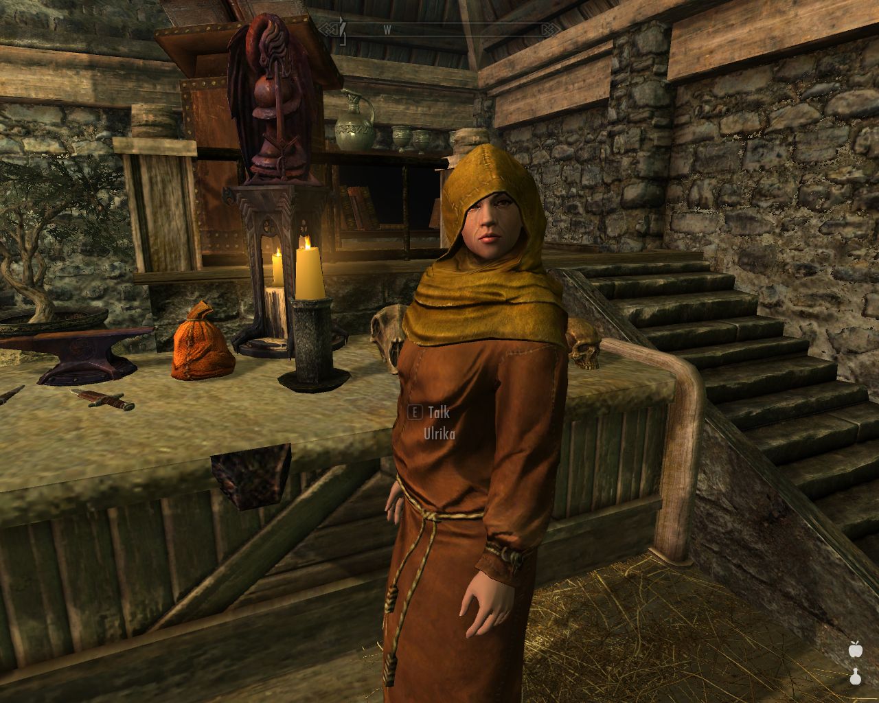The priestess Danica allows me to talk briefly to Cairine of Markarth. She looks almost normal by now. I tell her she mustn't think she's too old. She can start a new life in Hviterun. A great number of doors will be open to her and I shall give her all the help I can.