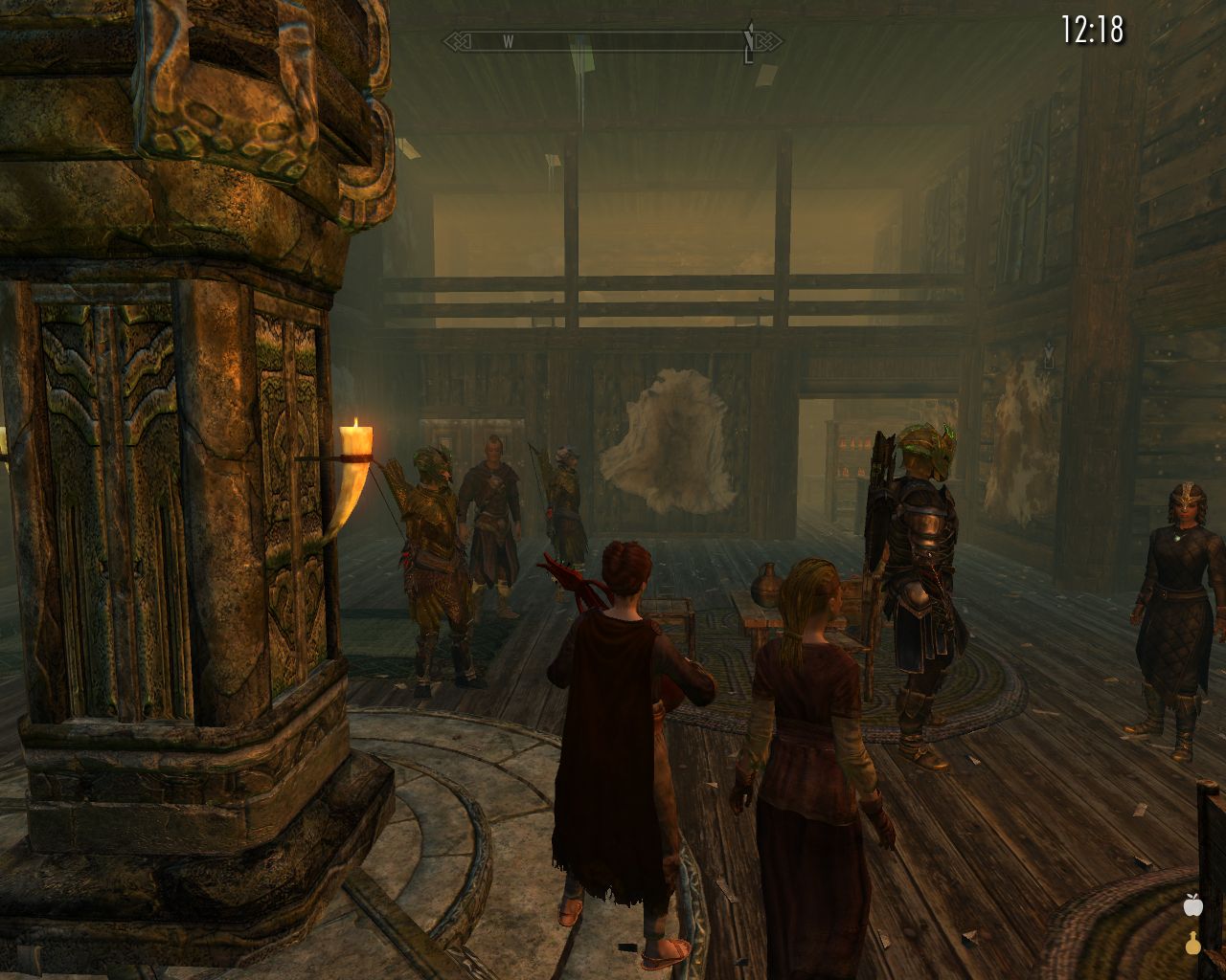 To avoid her approaching me and enquiring about my (lack of any) progress, we leave the inn soon and proceed to the palace where I introduce Ghorbash to the jarl and leave him talking with her bodyguard Bolgeir while the girls and I go to ask Sybille about the latest news. I enquire if she knows of anyone with initials MV having recently arrived and possibly being on the run from the thalmors. She says she doesn't know about the last part, but Legate Malpen Velvus of the Imperial Army was transferred here from Cyrodiil and arrived a couple of days ago. I should ask around in the fortress.