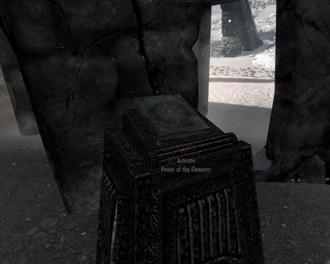 We fetch Ghorbash and run southeast, to Windward Ruins. Just like Faralda has told me, there's a pedestal inside that snowy ruin of I've-no-idea-what. After we've killed a couple of skeevers, I put the book onto the pedestal and cast the Flames spell at it as instructed.