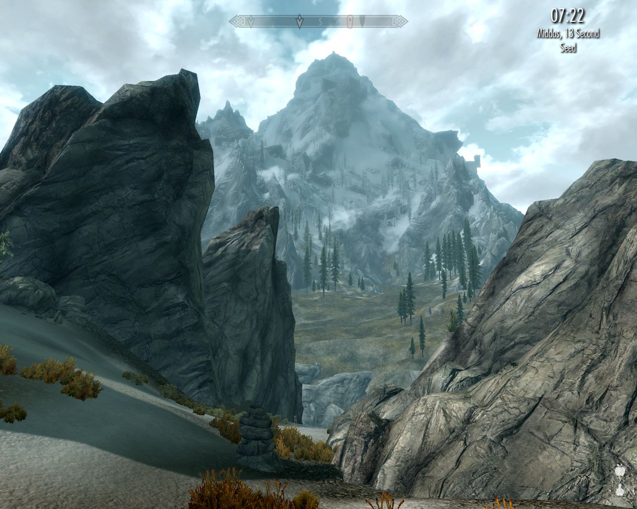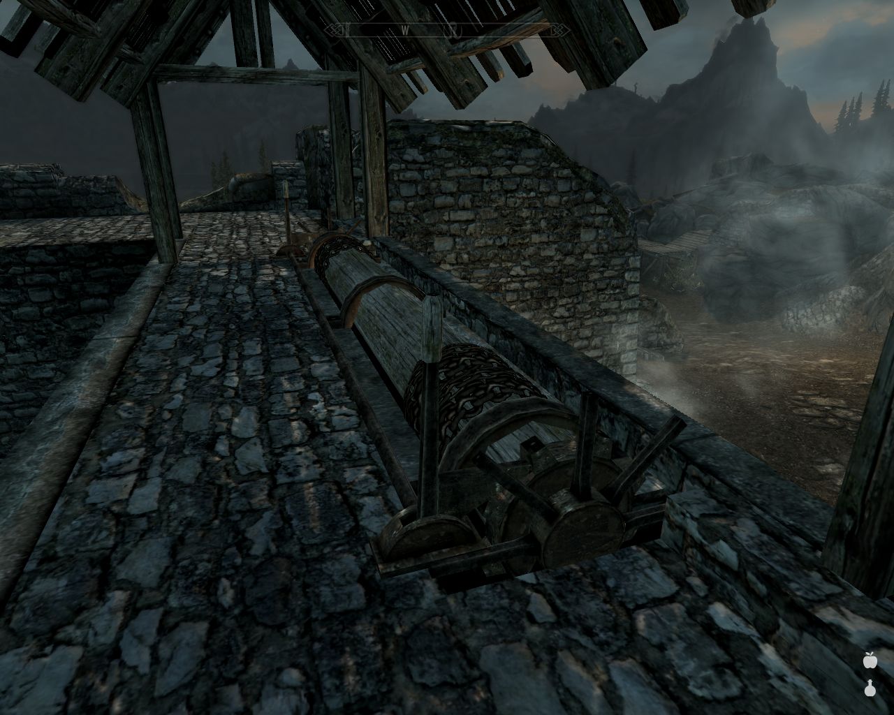 Yes, I could. And east-northeast of High Hrothgar, halfway to Hillgrund's Tomb, I found some more stone fortifications, much more human-built-like. They were on two sides of a mountain and apparently connected. Meaning, there were in all likelihood some structures inside the mountain.