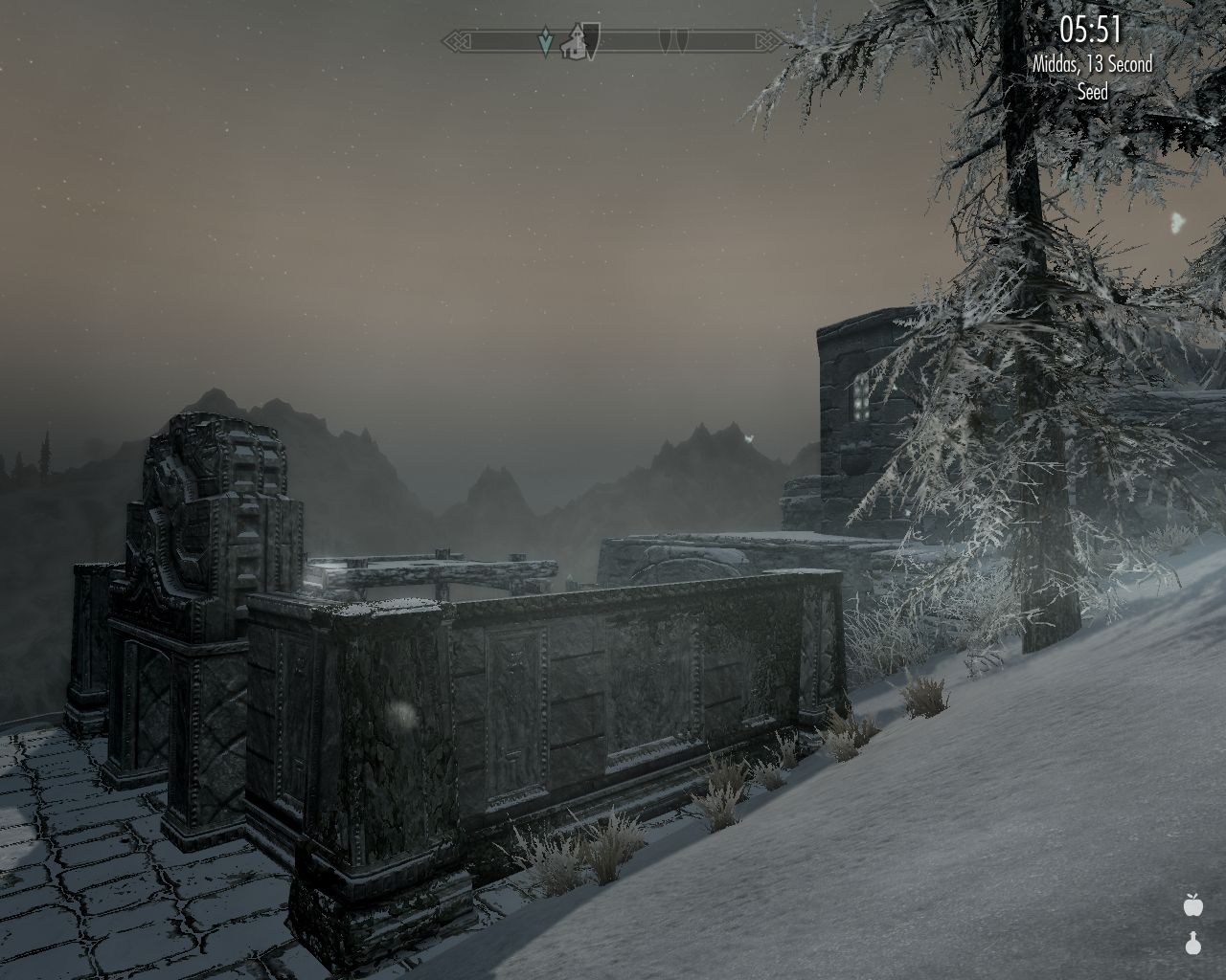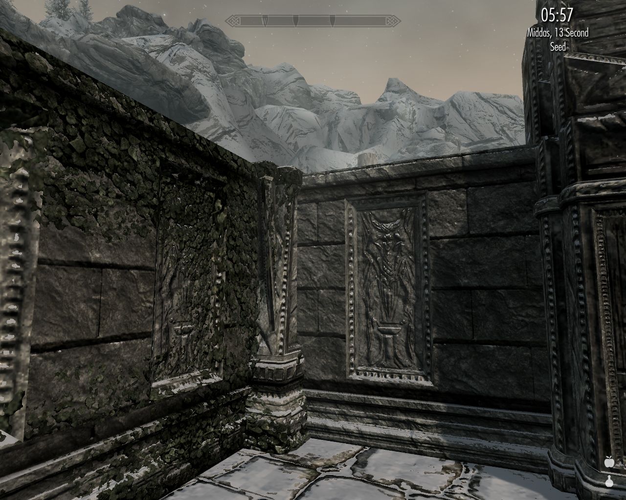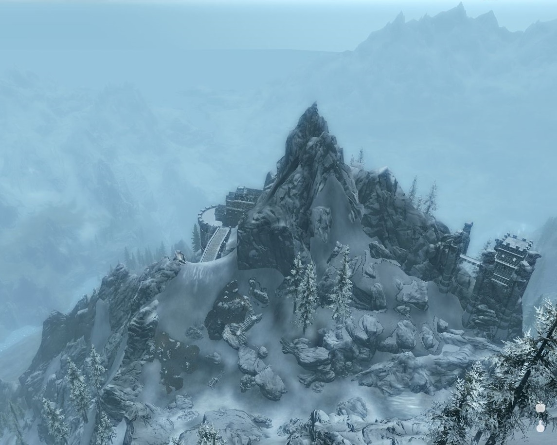 I had a weird dream. I was flying up Mount Nexus, but from the northern side. I floated towards that fortress one can see from the ground, the one we always assumed to be High Hrothgar. I realized now it's impossible to see High Hrothgar from the outskirts of Hviterun. What we had seen was something entirely different. It was halfway between Riverwood in the west-southwest and High Hrothgar in the east.