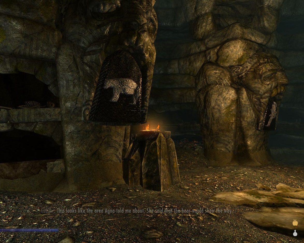 We find Golldir's aunt Agna's dead body. Why did the draugrs kill her if she was their relative? Because an evil mage, the enemy of Agna and Golldir's family, has settled down in this tomb, Golldir explains. He even has a Dragon Priest with him.