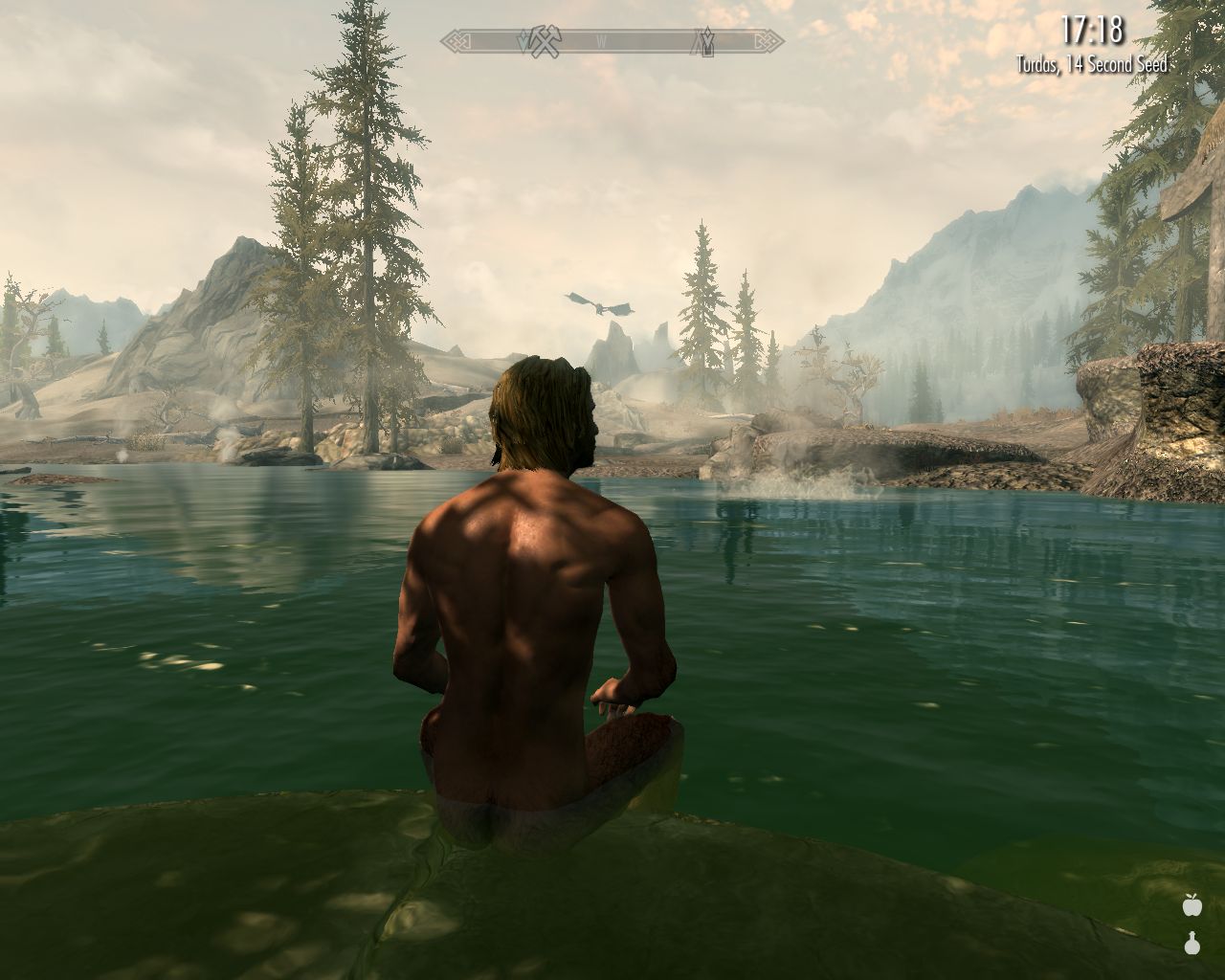 We do some socializing and then relax in the warm outdoors pool with the villagers of both sexes. I'm curious to see if Ghorbash will be able to avoid getting a hard-on. He is, actually. Maybe he feels self-conscious in a new situation like this, maybe he is apprehensive because of the dragon whom we can see flying back and forth in the distance, or maybe he keeps thinking intensely about something very unerotic.