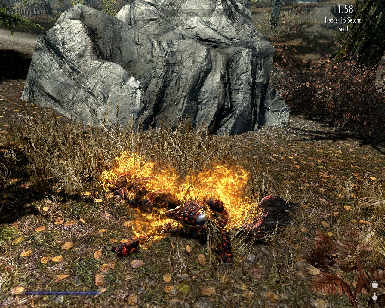 We run across an evil mage fighting a flame atronach. I succeed in getting a close-up of the latter before it's completely burned: