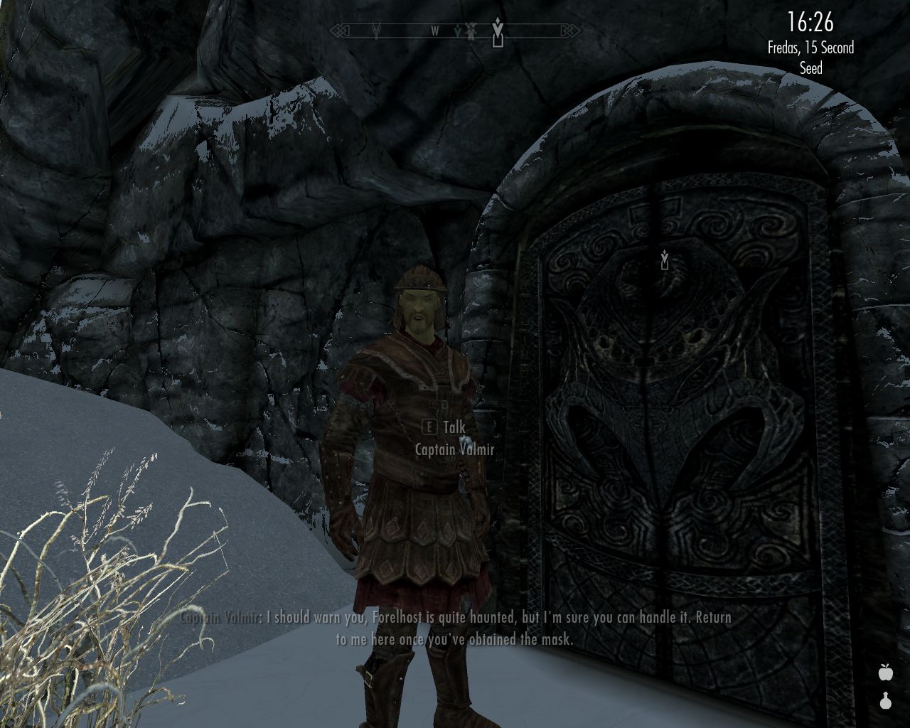 What? Valmir is not coming in with us? Is he possibly a relative of Captain Adius of Bruma? Well, never mind. I motion my followers to come along and enter by the door.